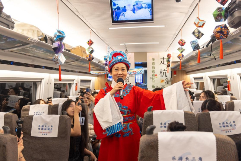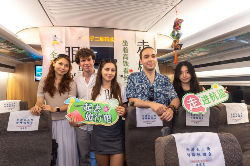 图2 全球青年双语主播乘坐杭温高铁前往温州途中,