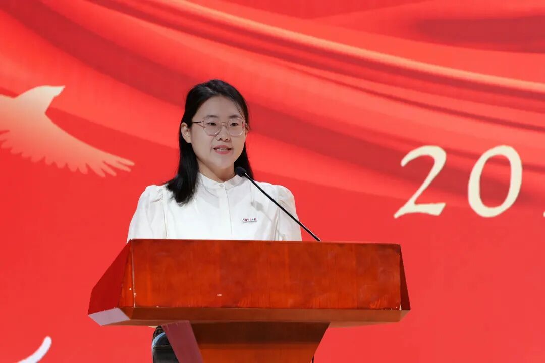 在“语通四海,星辰启梦”外国语言文化学院2025届毕业晚会上,2023级英语笔译硕士毕业生李雪霏作为研究生代表发言。