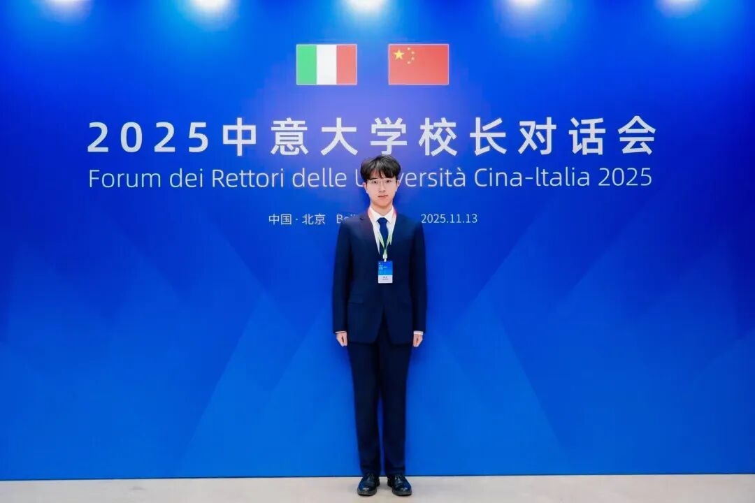 中国传媒大学外国语言文化学院2022级意大利语专业殷子谦同学,凭借学院“双语播音”特色学科的培养优势,全程担任2025中意大学校长对话会意大利语主持及画外音播报工作,以专业实力展现了外院学子风采。