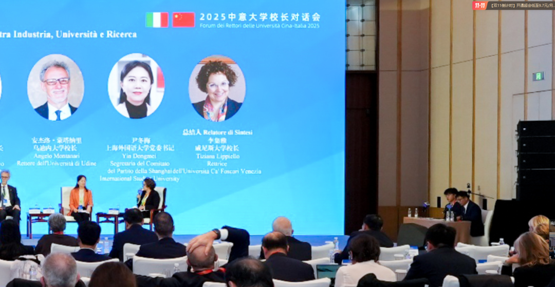 时值中欧建交50周年、中意建交55周年的重要历史节点,2025年11月13日,以“融合·创新·治理——面向未来的中意高等教育合作”为主题的中意大学校长对话会在北京威斯汀大饭店隆重举行。这是继去年意大利总统访华后,两国高校积极落实元首共识,有效推动中意高等教育合作实现新升级的重要双边对话会。中国教育部部长怀进鹏、意大利大学和科研部部长安娜·玛丽亚·贝尼尼共同出席、发表主旨演讲,并签署《中华人民共和国教育部部长与意大利共和国大学和科研部部长联合声明》,中国传媒大学副校长杨懿受邀发言,中意两国60余所顶尖高校的百余名校领导齐聚一堂,就有关话题进行研讨,多项教育合作成果集中发布,为两国关系发展注入新的教育动能。