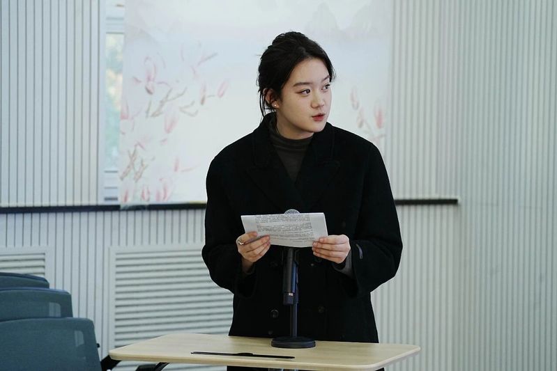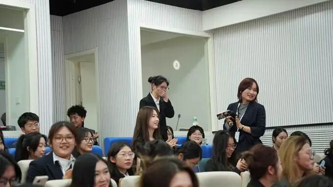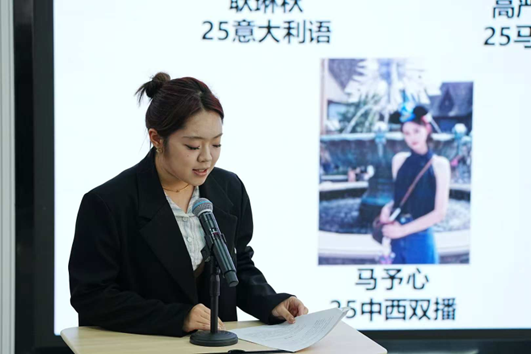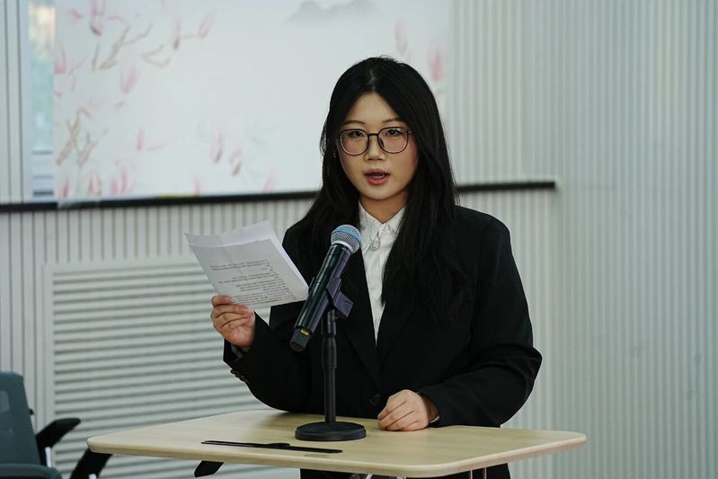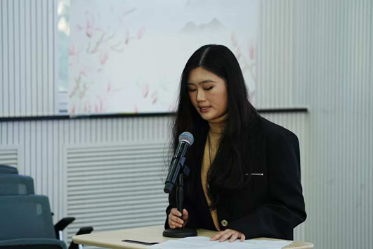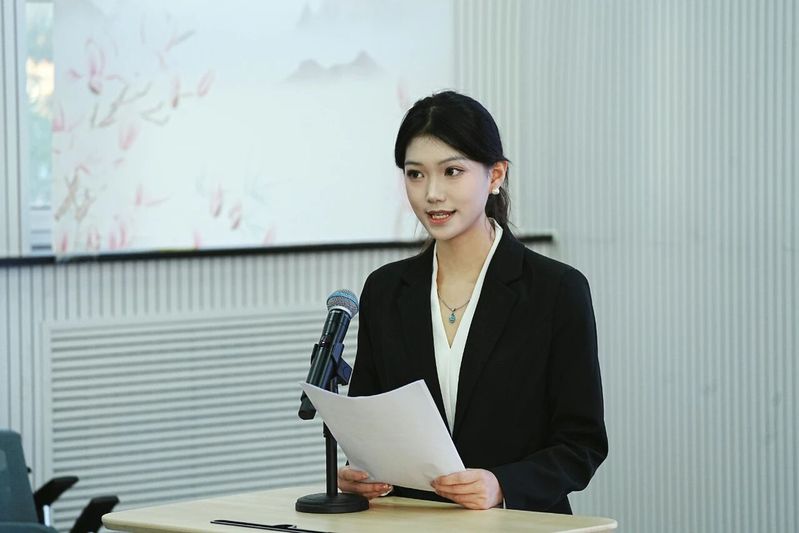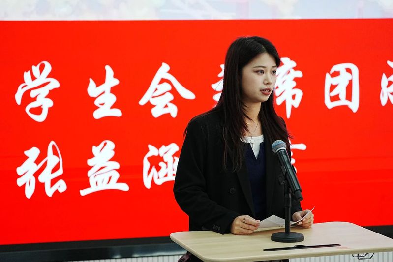 团委学生兼职副书记于千惠重点汇报了分管部门的工作成果与实践展望。实践部成功策划开学典礼、国际文化节歌会,推进多项志愿服务项目;外联部为活动提供资源保障,未来将举办留学、考公等相关主题讲座。她表示将持续优化活动品质,拓展服务边界,强化部门协作机制。