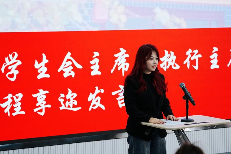 学生会指导老师陈莉娜老师在致辞中首先欢迎新成员的加入,并感谢第二届学生会的辛勤付出。她强调学生会是服务同学、锻炼能力、实现价值的重要平台,并提出三点期待:永葆服务心,做同学的贴心人,拒绝官僚作风,倾听同学声音,回应实际需求;永葆进取心,做知行合一的实干家,在办好活动的同时提升综合素质;永葆责任心,做校园正能量的引领者,从点滴小事做起,带动身边同学。