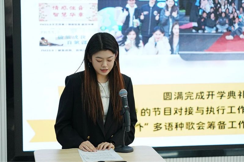 文艺部本学期圆满完成开学典礼、国际文化节等大型活动的节目策划与现场执行,负责主持人选拔、节目审核及全流程统筹,并在此前助力外院合唱团在校级比赛中荣获三等奖与最佳编曲奖。部门持续运营“晚安电台”栏目,积极拓展内容形式,注重团队协作与活动复盘。未来文艺部将优化工作流程,强化成员培养,建立常态化协同机制,并探索播客、多语种朗诵等创新形式,持续丰富校园文艺生活。