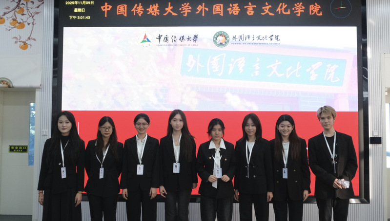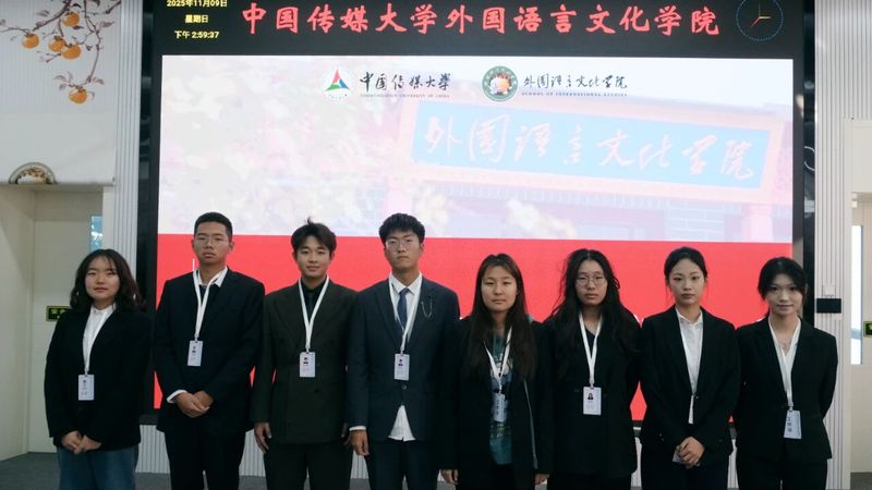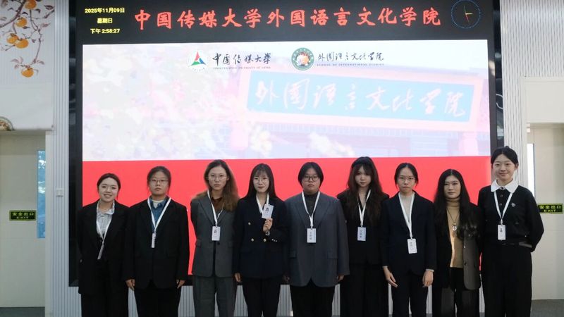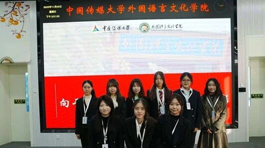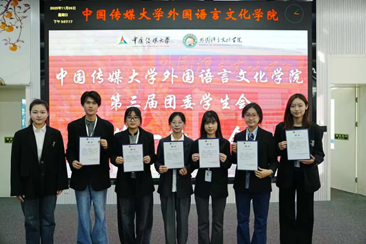 2025年11月9日下午,中国传媒大学外国语言文化学院团委学生会2025秋季学期第一次全体大会于33号楼266阶梯教室召开。本次大会由团委学生兼职副书记于千惠和宣传部部长李雨桐主持,学生会指导老师陈莉娜、兼职辅导员史若培老师、武洪羽老师及学院团委学生会全体成员参与会议。