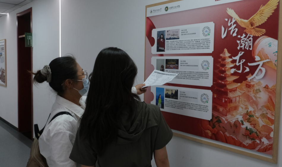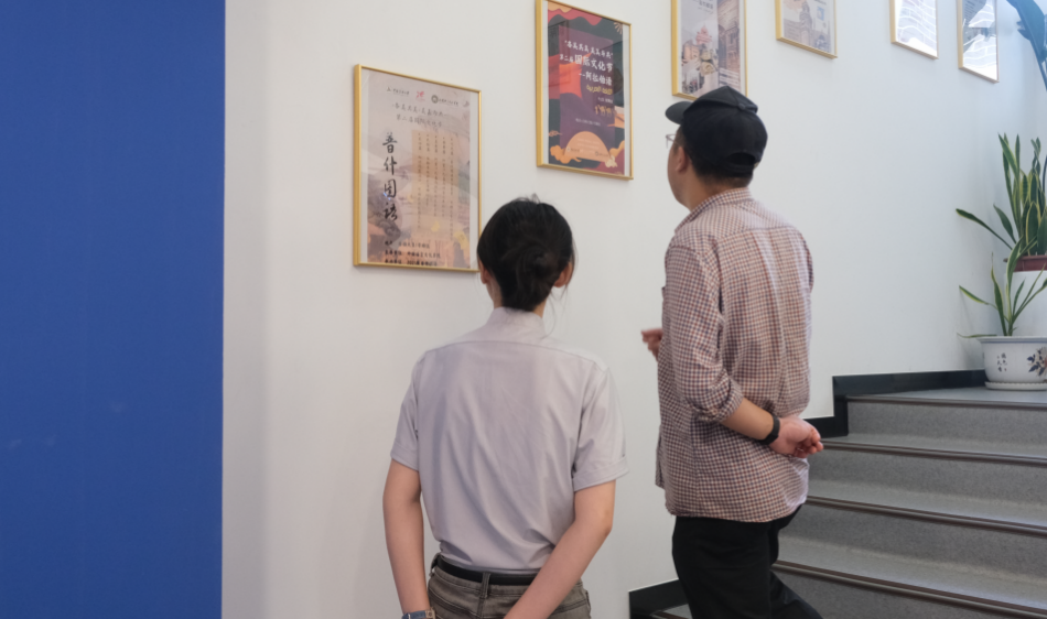 走近外国语言文化学院楼,门口整齐排列着各国国旗,并设置了“我的曼妙舞姿”趣味拍照打卡区,象征着学院多元包容的国际化氛围。学院门口大屏展播着我院学生创作的多语优秀作品,老师们带领志愿者向家长同学们介绍学院一楼长廊的硕士优秀作品展;走上二楼,文化墙呈现外院在国内国际跨文化实践活动里的足迹,展现了外院在党建、学科、以及人才培养的建树。图片和文字串联起外院人以语言为桥、拥抱多元文化的探索之路,生动诠释学院 “以文化人、以语通心” 的育人温度,让家长与学生沉浸式感受外院学子在语言文化交融中成长的蓬勃力量 。