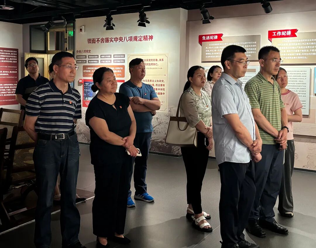 在基地讲解员的引导下,全体党员依次参观“信念与立场是党性的根基”“从严治党一刻不能放松”“以零容忍态度惩治腐败”等核心展区。展厅综合运用历史文献、全息投影、互动屏幕及多媒体展陈技术,系统呈现中国共产党纪律建设的百年历程与新时代全面从严治党伟大实践。在“不守纪律不讲规矩党性就无从谈起”专题展区,党员们通过互动装置观看江姐狱中绣红旗影像、焦裕禄同志治沙事迹纪录片等珍贵资料,深刻感悟革命先辈“平常时候看得出来,关键时刻站得出来,危急时刻豁得出来”的党性光辉。