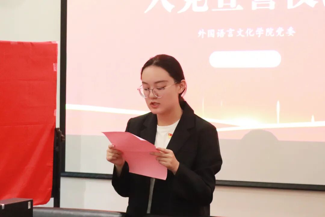 本次宣誓仪式既是党员发展工作的重要环节,更是一次生动党性教育和理想信念教育。外国语言文化学院党委将以此次活动为契机,持续深化党员的思想政治建设,教育引导全体学生党员踔厉奋发,勇毅前行,以实际行动践行入党誓言。