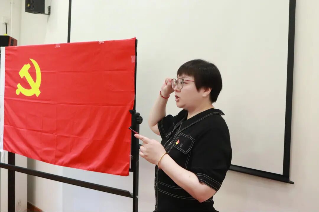 英语本科生党支部书记王茜主持入党宣誓仪式,并向各与会人员介绍了仪式流程。