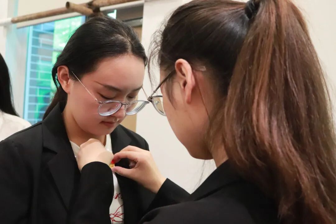 宣誓结束后,各支部老党员代表为新发展的党员佩戴了党员徽章,这是对他们身份的认可,也是对他们未来行为的期望。