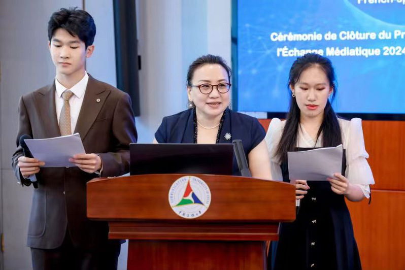在徐海燕老师的精心组织下,以法语专业为主体的学生团队连续两年为四期培训班提供了全方位的志愿服务。2020级法语专业要佳敏同学与2022中英双播专业李一鸣同学分别担任2024年上半年结业式法语主持与英语主持,表现出扎实的语言功底与从容的临场表现;2023级法语专业全体同学现场带来英法双语歌曲表演,用热烈的旋律与真挚的情感让非洲友人深切感受到中国青年的热情活力与中华文化的独特魅力;2024级法语专业同学担当“文化使者”,在2024年结业式上表演法语歌曲,陪同学员走访传媒博物馆与校园地标,生动讲解中传办学特色与中国传媒发展历程。2019级法语专业学生、现传媒研究院研究生魏雨辰担任2024年中国国际新闻交流助理,全程陪同非洲学员奔赴各地进行各类参访、参会活动,为研学提供高品质的协助和支持。培训班志愿者们的专业素养、热情态度与细致服务获得了学员与主办方的一致认可,成为培训期间一道亮眼的跨文化交流风景线。